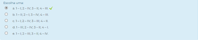 e. 1 – III; 2 – I; 3 – IV; 4 – II.