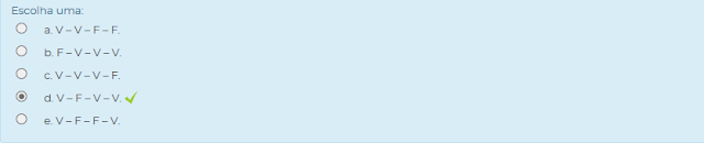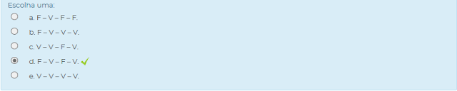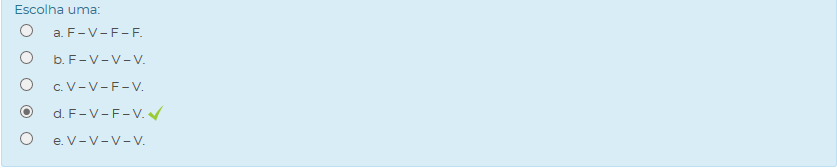 Agora, assinale a alternativa que apresenta a sequência CORRETA para V - Verdadeira ou F – Falso.