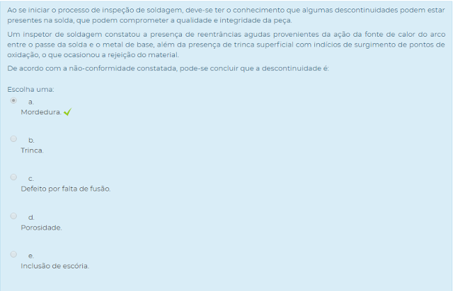 ( ) Havendo uma não- conformidade, os ensaios não- destrutivos são realizados na fase de execução e final da solda, afim de garantir a qualidade do produto.