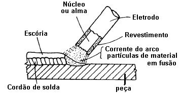 Figura: Desenho esquemático do processo de soldagem a arco elétrico.