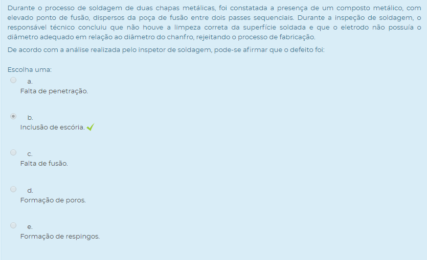 ( ) A inclusão de escória ocorre quando o material metálico é retido na zona fundida.