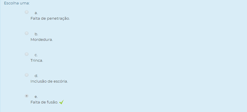 ( ) A falta de fusão ocorre quando a zona fundida não possui fusão completa.