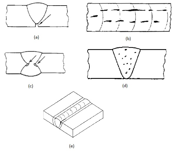 Figura: Defeitos em soldas, avaliadas por inspeção visual.