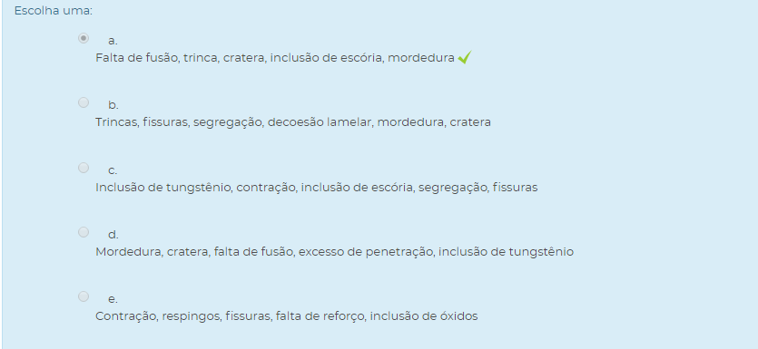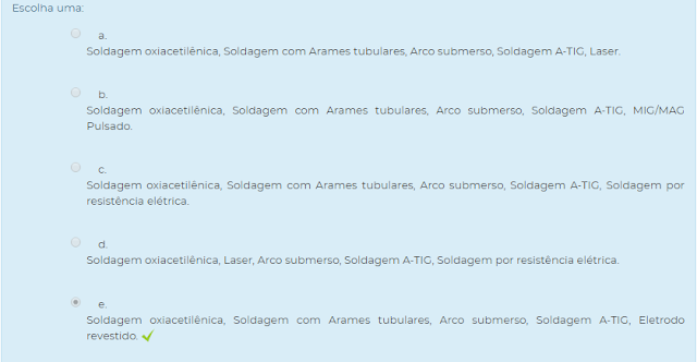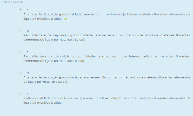( ) O processo GMAW absorve os gases gerados e consequentemente propicia um ambiente/atmosfera para estabilidade do arco, bem como a proteção de contaminação atmosférica junto à solda.