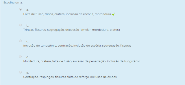 1) Defeitos em soldas podem ser detectados quando estes apresentam descontinuidades superficiais e que sejam abertas na superfície. Tais defeitos podem ser: trincas, poros, dobras, entre outros. Os ensaios não destrutivos utilizados para avaliação de possíveis defeitos de solda podem ser aplicados em todos os materiais sólidos e que não sejam porosos ou com superfície muito grosseira.