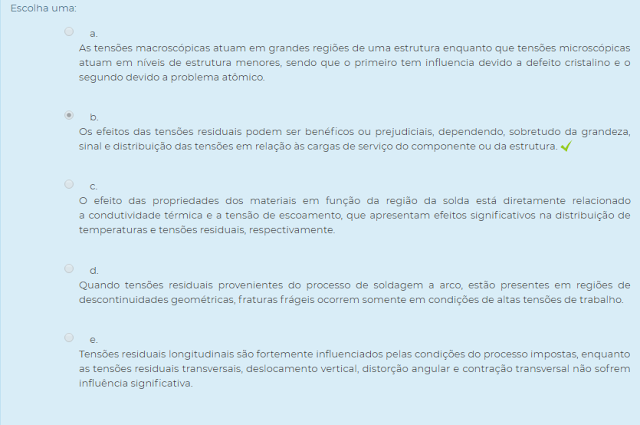 Sobre a afirmação acima é correto afirmar sobre as tensões residuais: