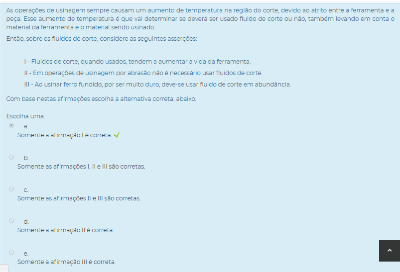 I - Fluidos de corte, quando usados, tendem a aumentar a vida da ferramenta.