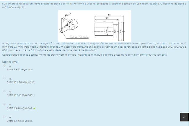 Considerando apenas o torneamento do trecho com diâmetro inicial de 16 mm, qual o tempo dessa usinagem, sem contar outros tempos?