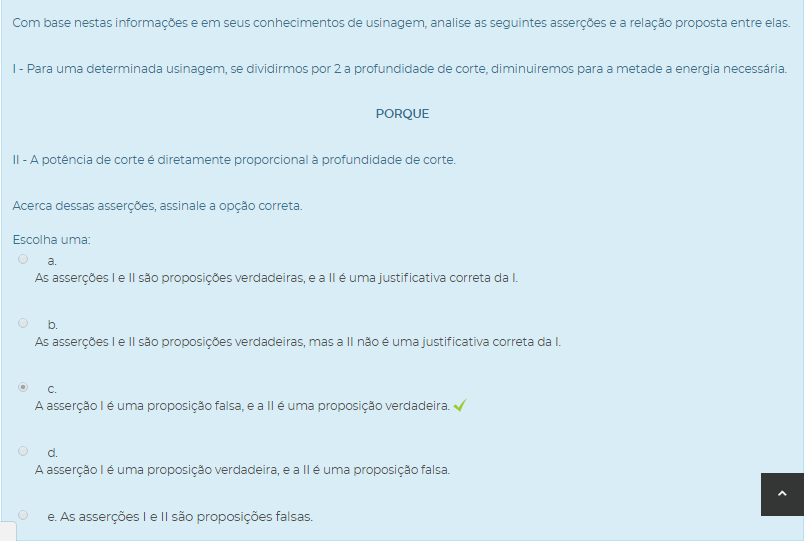 Com base nestas informações e em seus conhecimentos de usinagem, analise as seguintes asserções e a relação proposta entre elas.