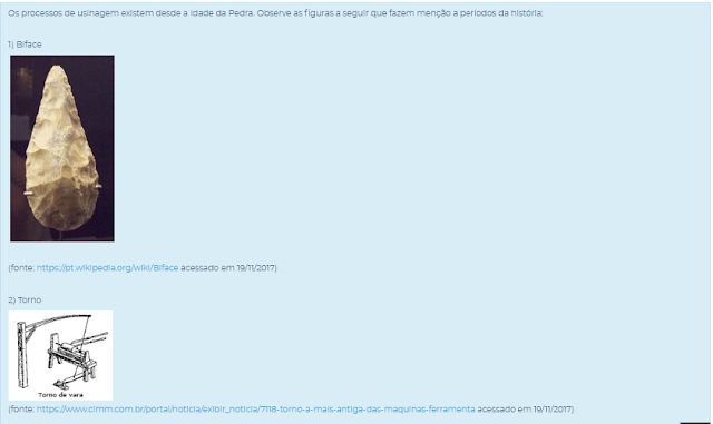 1) Os processos de usinagem existem desde a Idade da Pedra. Observe as figuras a seguir que fazem menção a períodos da história: