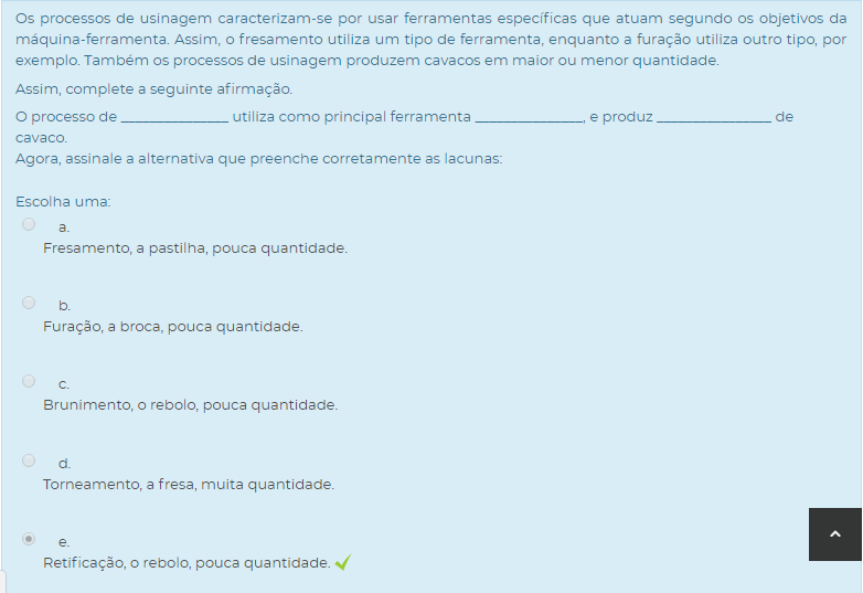 ( ) Nas usinagens de acabamento não são produzidos cavacos; apenas a superfície da peça é modificada.