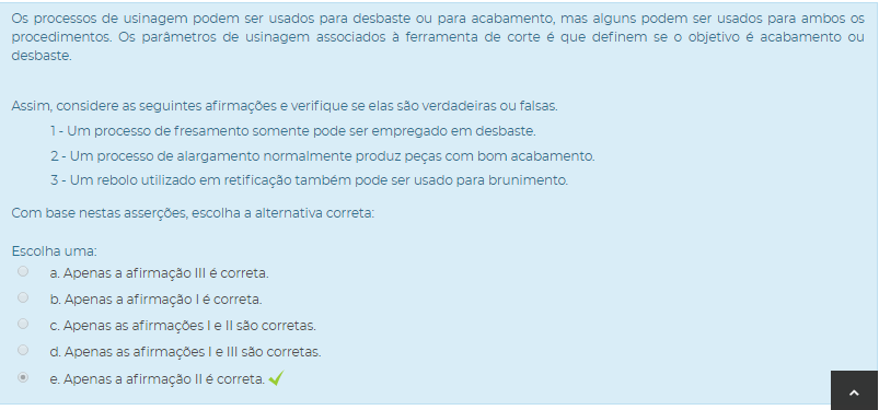 1 - Um processo de fresamento somente pode ser empregado em desbaste.