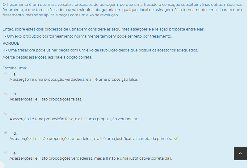 Então, sobre estes dois processos de usinagem considere as seguintes asserções e a relação proposta entre elas.