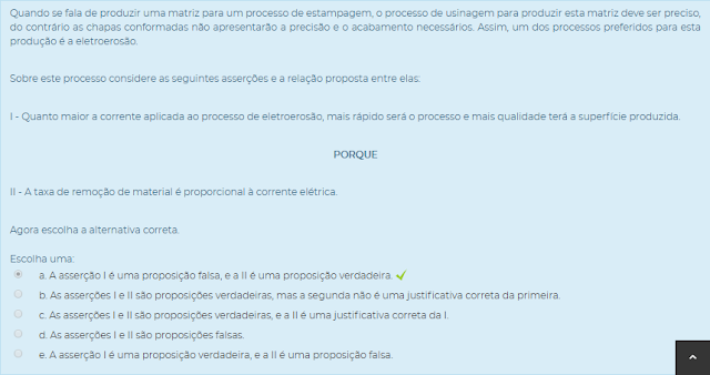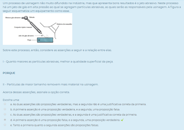 Então, sobre este processo de usinagem considere as seguintes asserções e a relação proposta entre elas: