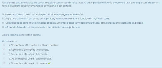 ( ) No caso de corte, permite obter superfícies de excelente qualidade.