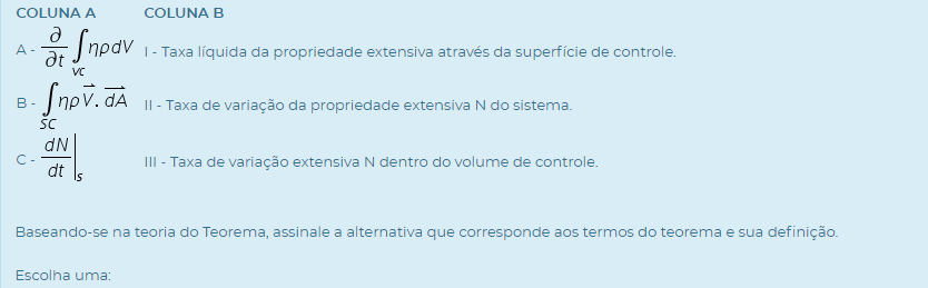 Julgue os itens e assinale a alternativa correta, referente aos termos do Teorema de Transporte de Reynolds.