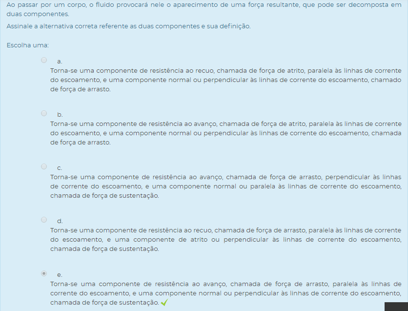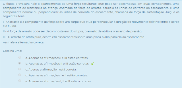 II - A força de arrasto pode ser decomposta em dois tipos, o arrasto de atrito e o arrasto de pressão.