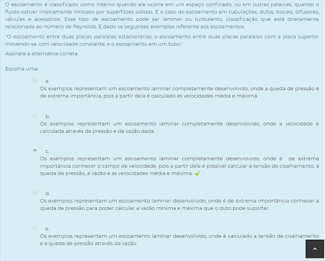 ( ) No escoamento interno ocorre, comumente, em tubos e dutos.