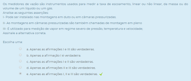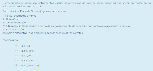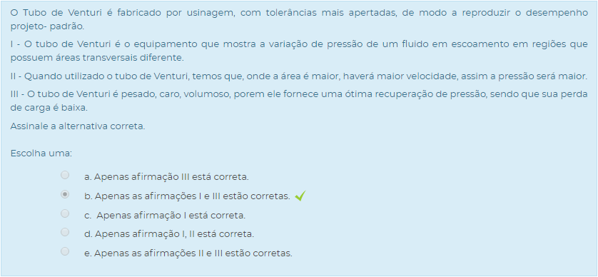 III - O tubo de Venturi é pesado, caro, volumoso, porem ele fornece uma ótima recuperação de pressão, sendo que sua perda de carga é baixa.