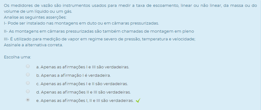 III- É utilizado para medição de vapor em regime severo de pressão, temperatura e velocidade;