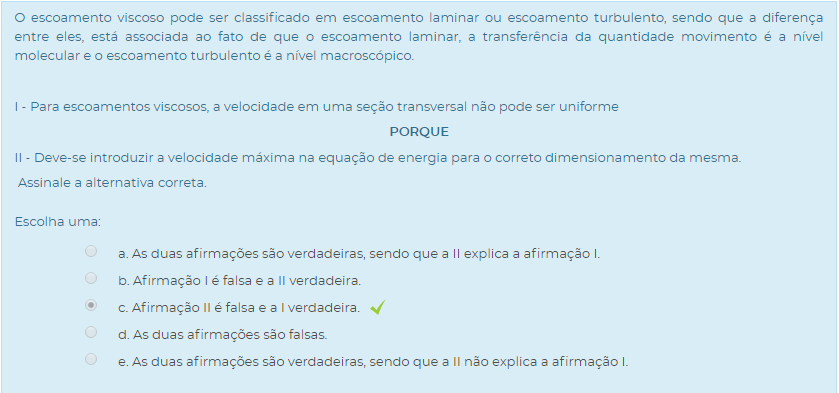 I - Para escoamentos viscosos, a velocidade em uma seção transversal não pode ser uniforme