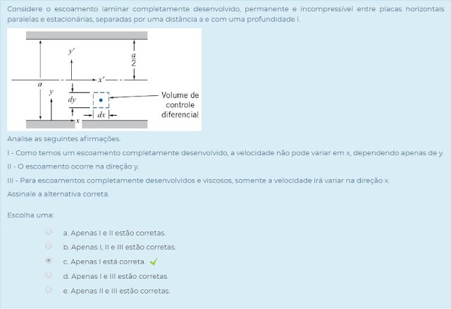 3) Considere o escoamento laminar completamente desenvolvido, permanente e incompressível entre placas horizontais paralelas e estacionárias, separadas por uma distância a e com uma profundidade l.