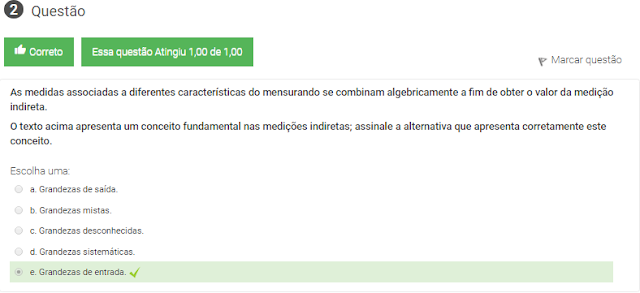 I- A partir da combinação das medições de grandezas de entrada não-correlacionadas, bem como da combinação de suas respectivas incertezas, podemos obter o resultado de uma medição indireta.