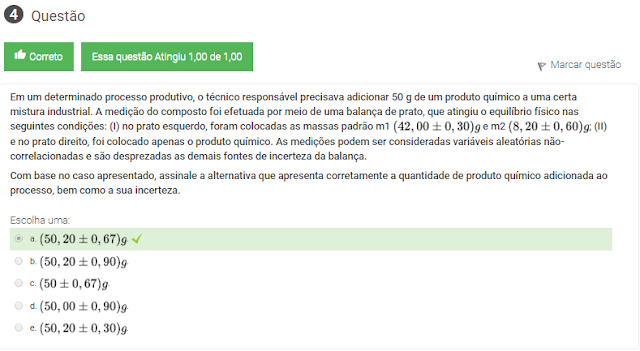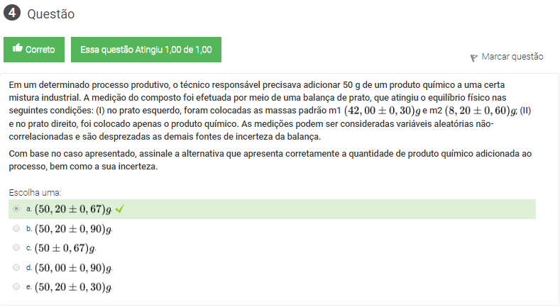 Com base no caso apresentado, assinale a alternativa que apresenta corretamente a quantidade de produto químico adicionada ao processo, bem como a sua incerteza.