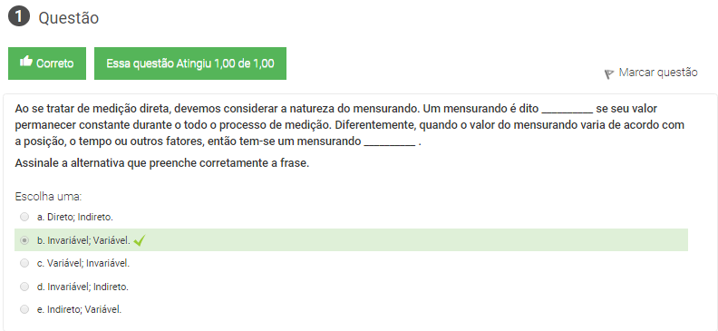 1 Ao se tratar de medição direta, devemos considerar a natureza do mensurando. Um mensurando é dito __________ se seu valor permanecer constante durante o todo o processo de medição. Diferentemente, quando o valor do mensurando varia de acordo com a posição, o tempo ou outros fatores, então tem-se um mensurando __________ .