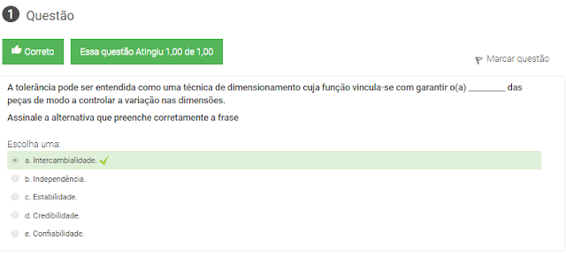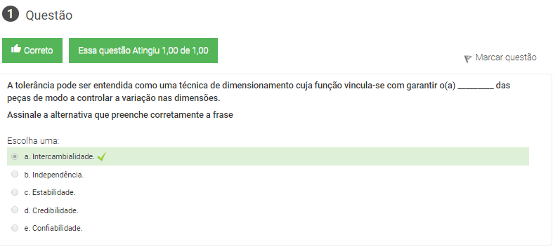 1 A tolerância pode ser entendida como uma técnica de dimensionamento cuja função vincula-se com garantir o(a) _________ das peças de modo a controlar a variação nas dimensões.