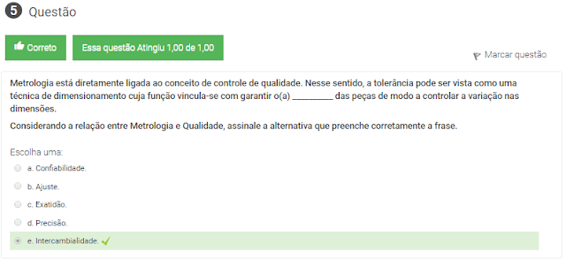 Metrologia e Controle Geométrico /UNIDADE DE ENSINO 3 /U3 - Avaliação da Unidade
