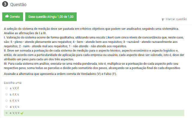 II. Deve ser somada a pontuação de cada sistema de medição para o aspecto técnico, aspecto econômico e aspecto logístico e, então, de acordo com a particularidade de aplicação para cada empresa ou usuário, cada aspecto deve ser valorado, isto é, deve der atribuído um peso para cada um dos três aspectos.