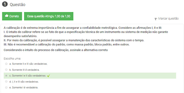 1 Ao se refletir sobre o processo de calibração, é comum partirmos da reflexão sobre o conceito de confiabilidade. Avalie as afirmações de I a III.