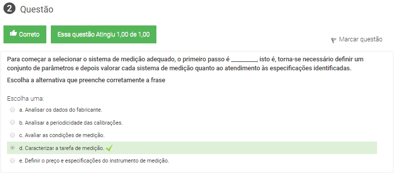 II. É necessário ainda avaliar as características metrológicas do instrumento estão de acordo com o que se pretende obter.