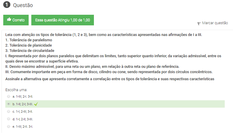 1 Leia com atenção os tipos de tolerância (1, 2 e 3), bem como as características apresentadas nas afirmações de I a III.