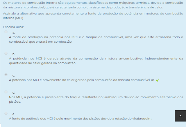 Assinale a alternativa que apresenta corretamente a fonte da produção de potência em motores de combustão interna (MCI).