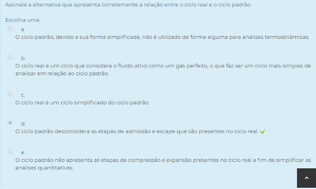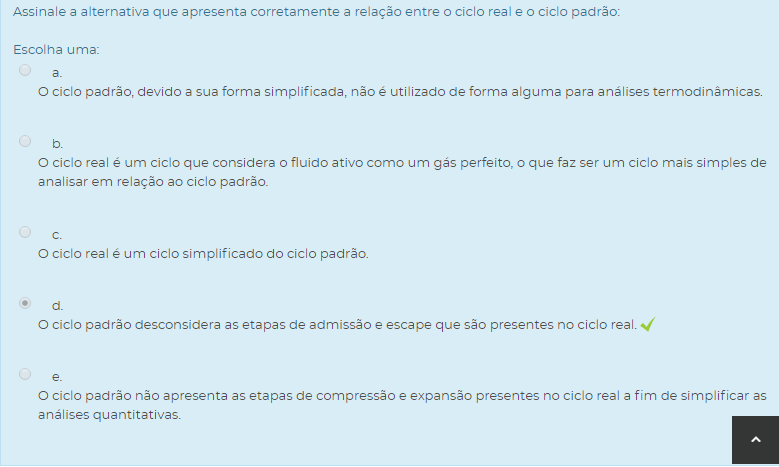 Assinale a alternativa que apresenta corretamente a relação entre o ciclo real e o ciclo padrão:
