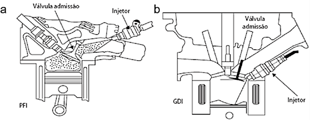 Figura 1: Dois diferentes métodos de injeção de combustível em motores de ciclo Otto.