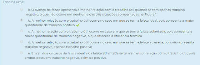 Assinale a alternativa que indique a situação no qual o avanço da faísca apresenta a melhor relação com o trabalho útil gerado pela explosão do combustível.