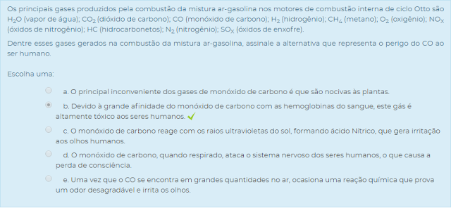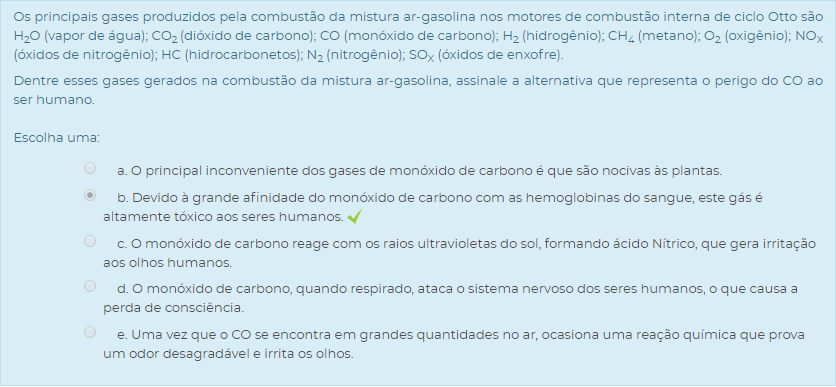 Dentre esses gases gerados na combustão da mistura ar-gasolina, assinale a alternativa que representa o perigo do CO ao ser humano.