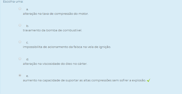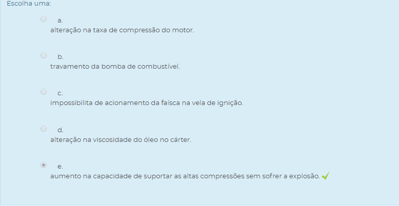 1) Os combustíveis podem ser classificados em relação ao seu poder antidetonante, que é estabelecido em relação a octanagem dos combustíveis, de modo que combustíveis com diferentes contagens vão apresentar comportamentos diferentes se utilizados em um mesmo motor.