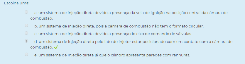 II. Finalidade das reentrâncias dos pistões usados em sistemas de injeção direta de motores do ciclo Diesel. |