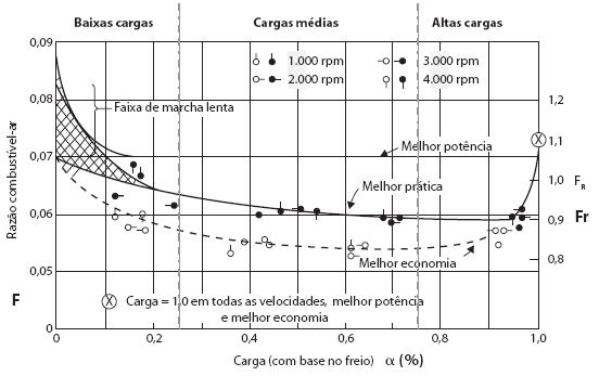 II. Quando em plena carga média, a sua relação combustível-ar (F) passa para 0,0996.