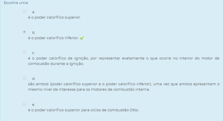 O poder calorífico dos combustíveis que tem maior interesse ao analisar os motores de combustão interna levando em conta que a água gerada pela combustão se encontra sempre no estado de vapor