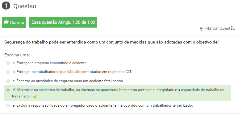Legislação e Segurança do Trabalho /UNIDADE DE ENSINO 1 /U1 - Avaliação da Unidade