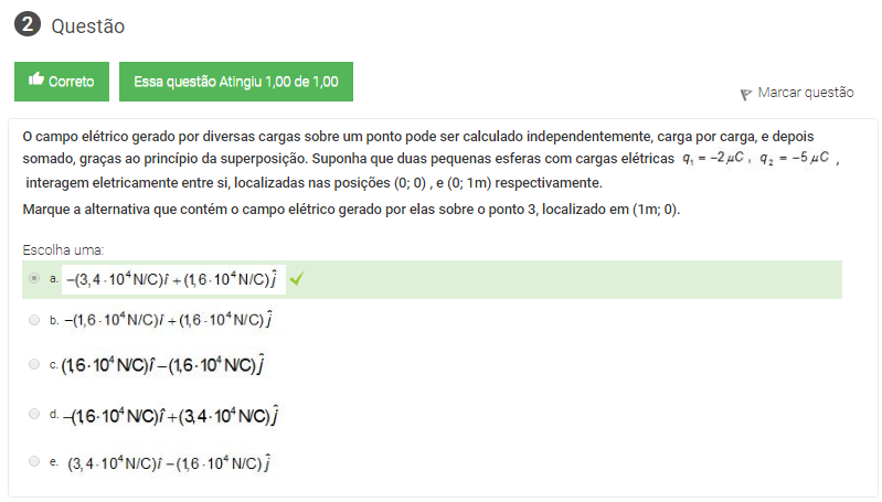 Marque a alternativa que contém o campo elétrico gerado por elas sobre o ponto 3, localizado em (1m; 0).