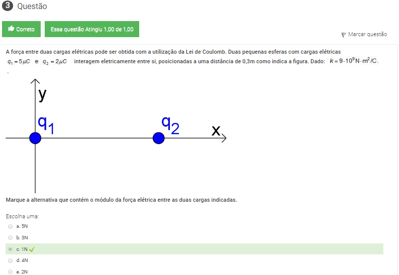 Marque a alternativa que contém o módulo da força elétrica entre as duas cargas indicadas.
