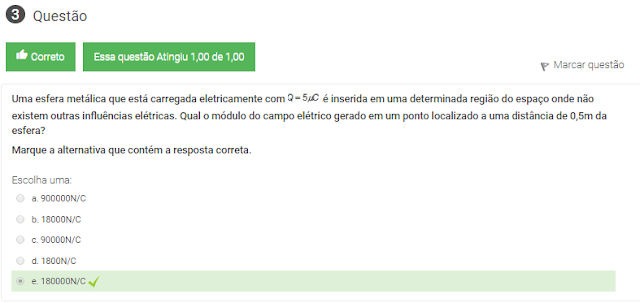 Princípios de Eletricidade e Magnetismo /UNIDADE DE ENSINO 1 - Encontro 3 /U1 - Avaliação da Unidade