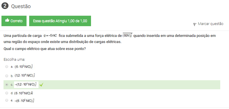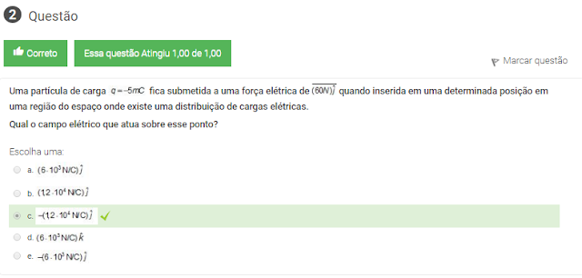 2 Uma partícula de carga q=-5 mC fica submetida a uma força elétrica de (60N) j quando inserida em uma determinada posição em uma região do espaço onde existe uma distribuição de cargas elétricas.