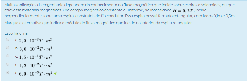 Marque a alternativa que indica o módulo do fluxo magnético que incide no interior da espira retangular.